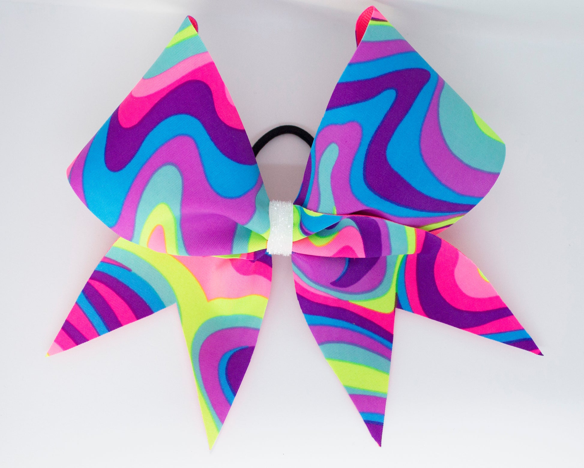 Three inch cheer bow with 70's style neon swirls!