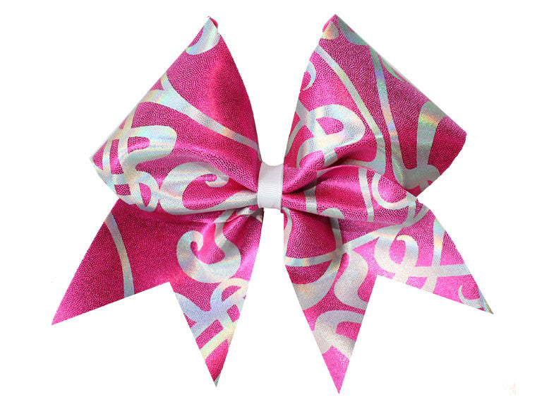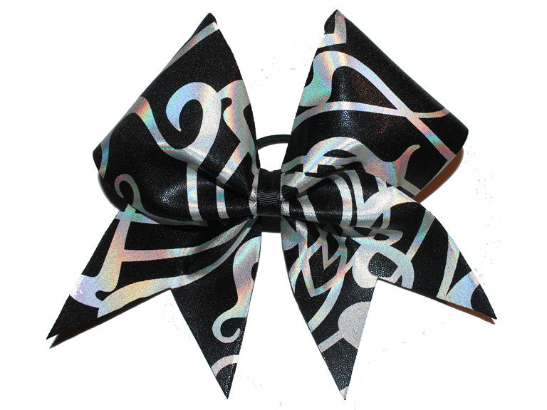 Hologram swirl shine three inch cheer bow available in five different colours!
